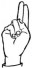 На ћирилици написано РУМЕНА ПАЉЕВШТИЦА састоји се из 16 слова [?]. Исписано ћириличном једноручном азбуком за глувонеме: